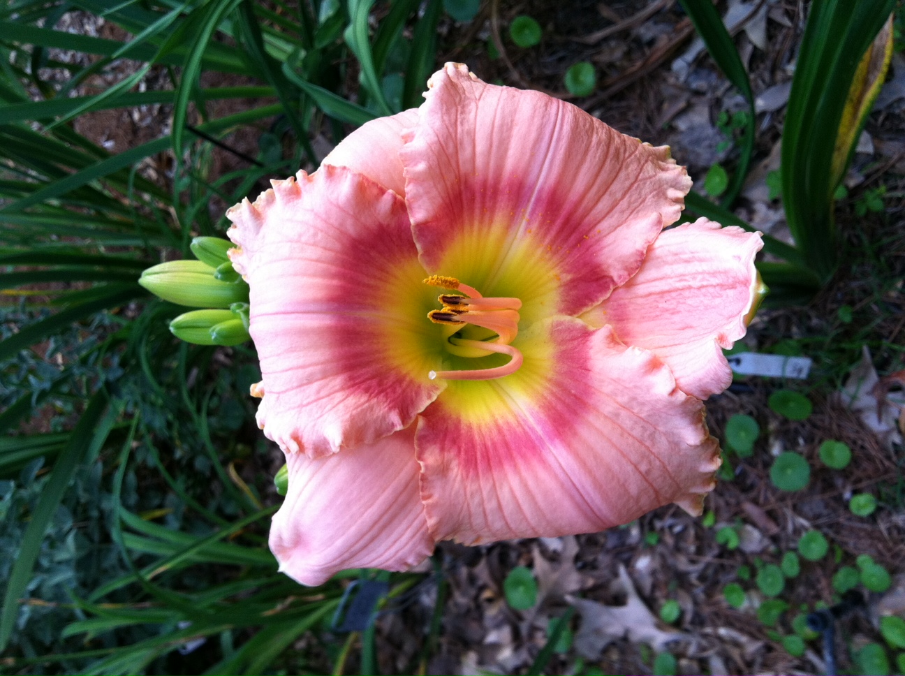 The daylily pictures I have been posting on Twitter and Facebook are patented varieties. We buy a few each year and add them to our backyard garden. They are sold in a bareroot “fan” which is about the size of hand fan people use to fan themselves in church. They sell for anywhere from $5 to $80 per fan. We probably have about 20 different varieties in our backyard garden at this time. These are offspring from old garden varieties that have been hybridized for size and beauty. These daylilies typically have a shorter bloom cycle (about a month) than the old garden varieties. For me that drawback is overcome by their beauty.