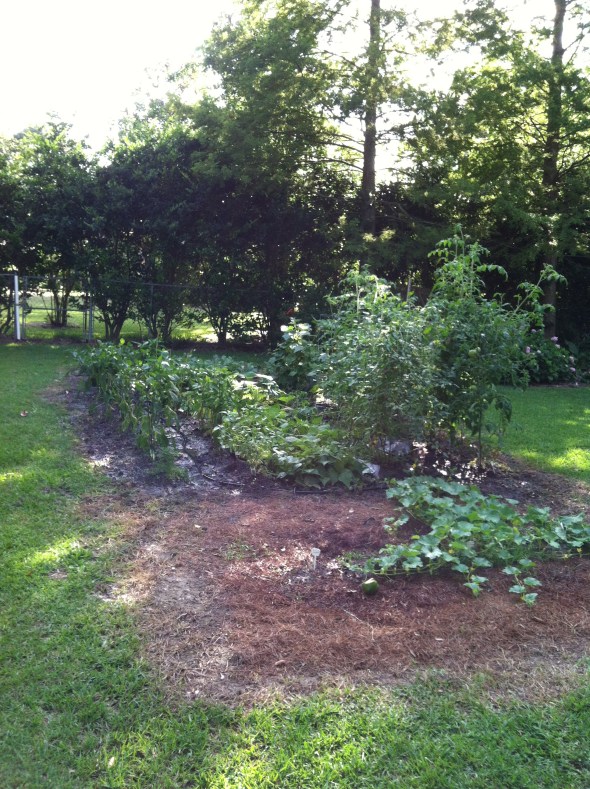 Posted: June 5, 2012 Filed under: Garden, Rambling Leave a commentThis year I planted the vegetable garden two weeks before Easter. Three weeks ago I side dressed the plants with ammonium nitrate and it is starting to get happy. Yep, that is the same stuff Timothy McVeigh used to blowup a building. It is pure nitrogen with a number rating of 34-0-0. It really gives the plants a boost, as they go into fruit production. It also put the weeds into a growth spurt. Last week I left town without having time to weed the garden. I fully expected to come home to a jungle. To my great fortune, my wife spent one of her off days weeding the garden. It looked fantastic when I got home.